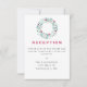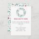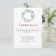 Nouvelle carte d'insertion pour réception de mariage rustique personnalisée, avec une belle couronne florale, avec des feuilles vertes et des roses roses en aquarelle, avec des modèles de texte pour vos noms et les informations de réception. Au verso, un motif floral assorti.