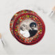 Fruits élégants et classiques, art raffiné de la Renaissance, chef-d'œuvre de Bottega della Robbia (Florence - Italie). Modèle d'invitation photo de forme ronde/ circulaire élégant en rouge, jaune or et vert avec des pierres précieuses topaze jaune 3D brillantes, facilement personnalisable avec votre texte et vos initiales. Design artistique et cool, facile à personnaliser pour une cérémonie de mariage, carte d'annonce de nuptial, cartons de table, carte "save-the-date", carte de remerciement, baby showers, bridal showers, Sweet 16, fêtes d'anniversaire de Quinceanera, Bat Mitzvah, fêtes de fiançailles romantiques, Noël, vacances, bureau, réunions de famille, célébrations du nouvel an, anniversaires, rassemblements, remises de diplômes scolaires, concert, récital ou presque tout événement que vous
