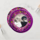 Fruits élégants et classiques, art raffiné de la Renaissance, chef-d'œuvre de Bottega della Robbia (Florence - Italie). Modèle de photo d'invitation de forme ronde/ circulaire élégante en or jaune, noir, violet, rose, fuchsia, violet avec des pierres précieuses jaunes topaze 3D brillantes facilement personnalisable avec votre texte et vos initiales. Design artistique et cool, facile à personnaliser pour une cérémonie de mariage, carte d'annonce de nuptial, cartes de table, carte "save-the-date", carte de remerciement, baby showers, bridal showers, Sweet 16, fêtes d'anniversaire de Quinceanera, Bat Mitzvah, fêtes de fiançailles romantiques, Noël, vacances, bureau, réunions de famille, célébrations du nouvel an, anniversaires, rassemblements, remises de diplômes scolaires, concert,