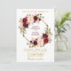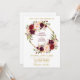 Carte d'invitation de mariage avec couronne florale de Bourgogne à l'aquarelle et or