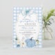 Invitation modifiable de Baby Shower Couronne florale de citrouille automnale à Gingham bleu