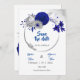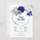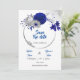 Invitation couronne florale de mariage bleu royal argentée sa