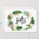 Un panneau de CADEAUX amusant et festif avec des fleurs aquarelles (hibiscus, feuilles de palmier, orchidées, frangipanier) et une calligraphie moderne. Ce sera parfait pour les mariages, les enterrements de vie de jeune fille et les événements similaires.