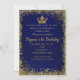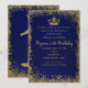 Invitation Couronne pailletée bleu roi et or pour fête d'anni