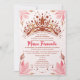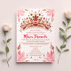 Cette Quinceañera Party Invitation a de beaux feuilles roses dans les coins avec une belle couronne artistique dans le centre. Les couleurs sont dans l'ensemble roses et or. Et beaucoup de place pour remplir tous les détails merveilleux pour une fête de coing glorieuse.