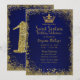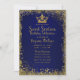 Invitation Couronne scintillante bleue royale et or pour fête