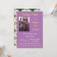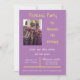 Image d'une fille d'anniversaire et d'une princesse sur fond violet à l'avant avec les détails de la fête et des images de marguerites au dos.