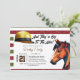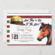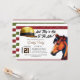 Course moderne Horse Derby Party Equestrian Invitation Modern Horse Race Derby Party Invitation avec une illustration d'un cheval de course avec jockey et motif rayé sur le dos. Tous les éléments de texte peuvent être changés afin que ce design puisse être utilisé pour d'autres événements aussi : faire-part de mariage équestre classe, fête d'anniversaire de cheval, fête de montre de derby, ouverture de grange de cheval et plus encore. Arrière - plan, la couleur de l'illustration et les couleurs du texte peuvent être changés à l'aide de l'outil de conception!