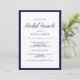 Ces élégantes et élégantes invitations au brunch nuptial présentent du texte bleu marine chic sur un arrière - plan blanc, bordé de marine.