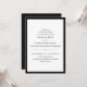 Ces invitations de mariage élégantes et élégantes présentent du texte noir chic sur un arrière - plan blanc, bordé de noir classique.