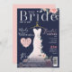 Annoncez votre événement de douche nuptiale avec notre élégant, élégant et tendance magazine de douche nuptiale invitation pour les futurs mariés. L'invitation à la douche nuptiale est conçue pour ressembler à un magazine nuptial élégant et glamour. L'image du magazine de douche nuptiale présente notre robe mariage rose pâle et blanche, chic, élégante et moderne peinte à la main. Jardin botanique de roses et de fleurs en fleurs. La robe florale est accrochée à un cintre de style vintage imitation or orné. Dentelles de fleurs douces et emblèmes scintillants sur la robe mariage créent un look magnifique, sophistiqué et luxueux La tête de maquette du magazine "The Bride" crée le nom du magazine. Le texte d'invitation de la douche nuptiale est conçu pour ressembler à du texte que vous verriez dans un magazine. Toutes les illustrations sont dessinées à la main par Moodthology Papery.