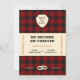 Un concept de design basé sur une couverture de livre populaire et iconique pour une carte d'annonce de faire-part de mariage "Save the Date" avec une touche écossaise. Le fond de tartan rouge foncé ajoute un élément de design élégant pour tout mariage inspiré de l'Écosse. Ajoutez votre propre texte pour une annonce de mariage unique et originale.