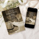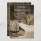 Invités Invitations à votre cérémonie de mariage à la ferme ou au ranch et réception avec le décontracté Cowboy Casquette et Barn Wood Country Western Faire-part de mariage. Cet invitation nuptial rustique chic propose une photo couleur sépia en noir et blanc rehaussée numériquement d'un casquette cowboy, voile nuptial et mouchoir en lin taillé en dentelle vintage avec un burlap et arrière - plan en bois de grange patiné.