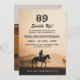 Des amis Invitations et de la famille à une célébration d'étape avec cette Invitation d'anniversaire rustique rustique rustique de pays de Cowboy. Avec une silhouette saisissante d'un cowboy à cheval sur fond chaud et ensoleillé, cette invitation personnalisable reflète parfaitement l'esprit de l'ouest sauvage et le charme rustique. Idéal pour la fête du 89ème anniversaire avec un thème occidental, rodéo ou champêtre, son design classique évoque un sentiment d'aventure et d'attrait intemporel. L'invitation comprend un espace suffisant pour les détails de l'événement, y compris la date, l'heure, l'emplacement et les informations RSVP. "Saddle Up!" pour un bain d'anniversaire mémorable avec cette invitation photo unique et élégante qui promet une occasion vraiment spéciale. Pour plus de produits visitez ma boutique zazzle : Youtopia Official