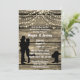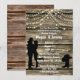 Carton d'invitation pour la réception de Cowgirl et Cowboy avec des silhouettes d'un couple s'embrassant sur un fond en bois. Le design comporte des guirlandes lumineuses, un couple western, des bottes et un chapeau. Superbe invitation pour les réceptions, les mariages, les barbecues et plus encore. Personnalisez avec les détails de votre fête.