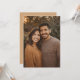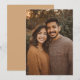 This wedding invitation features a warm, intimate photograph of two individuals in cozy knitted sweaters, capturing a moment of genuine happiness and connection. The earthy color palette, dominated by rich browns with subtle hints of green from the softly blurred natural background, evokes an autumnal feel of warmth and tranquility. The casual style emphasizes comfort and authenticity, making it perfect for couples who appreciate simplicity and heartfelt moments. The photographic representation adds clarity and realism, enhancing the inviting and joyful mood of the design. Ideal for celebrating love and togetherness, this invitation sets the tone for a meaningful and personal wedding celebration.