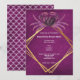 Un grand crabe vu de dessus a ses pinces tournées l'une vers l'autre et repose sur un cadre géométrique doré faux entouré d'un beau fond magenta texturé simili-suédois avec des modèles blancs pour votre texte personnalisé. Le dos est de la même couleur que le devant et présente un joli motif à coquilles blanches qui ressemble à des écailles de poisson. Cette superposition peut être supprimée si vous préférez un arrière-plan uni. Idéal pour les thèmes nautiques, marins, sous-marins, plage et mer pour les anniversaires, mariages, anniversaires de mariage, anniversaires et événements d'entreprise.