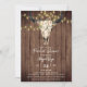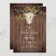 Cette invitation à la douche nuptiale de saumons boho présente un crâne de vache fleuri avec de jolis lampes à cordes de fleurs jaunes sur un arrière - plan en bois rustique.
