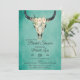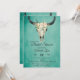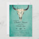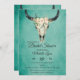 Cette invitation à la douche nuptiale Boho présente un crâne de vache fleuri sur un arrière - plan turquoise. -