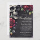 Invitation Crâne gothique et roses rouges Halloween à la main
