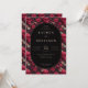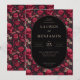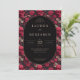 Cette invitation de mariage présente un thème gothique-romantique saisissant avec un motif floral et de crâne complexe sur un fond noir. Le design met en valeur des rouges profonds, des roses atténués et des gris foncés, créant une atmosphère macabre mais élégante. Un cadre ovale centre le texte, qui est présenté dans une police serif formelle, renforçant l'atmosphère de mariage traditionnel tout en ajoutant une touche unique et audacieuse. Parfaite pour les couples qui cherchent une apparence mémorable et distinctive, cette invitation allie la beauté à la morbidité pour célébrer leur jour spécial.