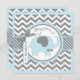 Empreinte de chevrons gris et blanc chic aux accents bleus bébé et à l'apparence 3D polka point bow et ruban rayé et éléphant bleu avec bow cravate baptism invitation à un bébé garçon.