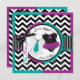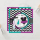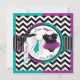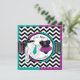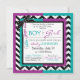 Une carte d'invitation à la fête, composée d'un chic chevron noir et blanc et d'un adorable pull en pois avec une cravate turquoise et un chic tutu pourpre, révèle un sexe sucré.