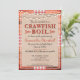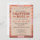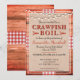 Ce design de style rustique dispose d'un arrière - plan en bois avec ruban rouge et blanc. En plus de cela est une texture de burlap et une police de serif rouge et noir et écriture manuscrite qui, est tout personnalisable à votre événement, que ce soit une ébullition de langouste, homard, fruits de mer ou de poisson ébullition. Célébrez votre diplôme, anniversaire, fiançailles, ou tout événement en style avec cette invitation!