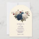 Elegantly announce your special day with this arch-shaped wedding invitation, featuring a stunning floral arrangement in deep navy blue, rich terracotta, and soft cream hues. The sophisticated design is perfect for a modern romantic wedding, blending classic floral motifs with a contemporary arch silhouette. The high-quality print ensures every detail of the botanical artwork stands out, creating a memorable first impression for your guests. This invitation sets a warm and inviting tone, hinting at the beauty and love that will fill your celebration. Let this exquisite piece be the beginning of your happily ever after.