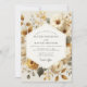 Evoking a sense of gentle romance, this design features a delicate arrangement of cream-hued blossoms and autumnal foliage. The soft color palette and organic textures create a warm and inviting atmosphere, perfect for a rustic celebration. Hints of soft gold and muted green add depth to the floral composition.