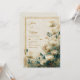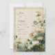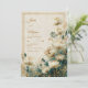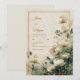 Capture the essence of refined organic luxury with this multi-dimensional botanical design. A soft, textured cream background provides a bright and airy base for large, off-white Astrantia blooms (Masterwort) that feature delicate gold-tipped stamen. The right side of the composition is grounded by a moody, artistic wash of deep teal and emerald green watercolor, which is beautifully detailed with a dusting of shimmering gold glitter and fine metallic specks. A thin, double gold border frames the scene, creating a sophisticated contrast between the light ivory petals and the nocturnal jewel-toned corner. This wedding invitation is a perfect match for an upscale estate wedding, a romantic spring garden ceremony, or a sophisticated evening reception. It is especially suited for couples using a color palette of ivory, gold, and peacock teal, looking to blend a classic vintage aesthetic with modern artistic watercolor elements.