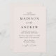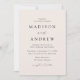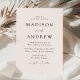 Faire-part de mariage minimaliste et moderne avec vos détails mariages en lettres noires avec accents de script de calligraphie. L'arrière - plan crème peut être changée en couleur de votre choix. Conçu pour coordonner avec notre collection de mariages Modern Elegance.