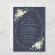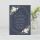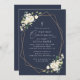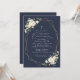 Invite friends and family in style and set the tone for your special day with this elegant first holy communion invitation. Design features white watercolor flowers, greenery and gold frame on navy blue background.