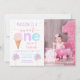 Cette mignonne invitation comprend un cône de crème glacée et des ballons aux couleurs pastel arc-en-ciel avec des confettis de fausse feuille d'or.