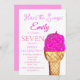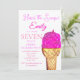 Invitation Crème de glace 7e anniversaire fille rose aquarell
