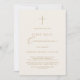 Cette délicate croix d'or crème première invitation à la communion sainte est parfaite pour un événement religieux moderne. Le design minimaliste romantique présente une belle et élégante typographie de champagne jaune doré sur un arrière - plan de crème d'ivoire au look épuré et sobre.