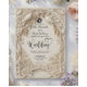 Invitez vos invités à entrer dans un monde de romance intemporelle avec un design qui rappelle les jardins des domaines européens du XVIIIe siècle. Cette suite capture la grandeur d'un lieu historique à travers une narration visuelle complexe, établissant un ton sophistiqué pour vos prochaines noces. La palette neutre assure une intégration harmonieuse avec n'importe quel schéma de couleurs de mariage formel tout en conservant une atmosphère de luxe discret. Il s'agit d'une carte plate et imprimée sur du papier lisse qui simule la texture visuelle d'un bas-relief sculpté tridimensionnel. Le design présente une palette monochromatique ivoire et beige avec l'apparence de la pierre sculptée. Une arche baroque détaillée, drapée de grappes de glycine et de vignes de lierre grimpant, encadre le texte central. Éléments de la scène : À l'intérieur de l'arche, un paysage pictural représente un pont de pierre romantique traversant une rivière calme, entouré d'arbres de jardin. Deux colombes blanches sont perchées sur les branches supérieures de l'arche. Typographie : Les noms des mariés sont rendus dans un script calligraphique orné de fioritures en forme de cœur, tandis que les détails de l'événement apparaissent dans une police serif noire tradition