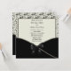 Crème d'ivoire noir et écru noir damassé vigne tourbillonneuse avec élégant noir et ecru pliage-over imprimé design avec faire-part de mariage carré centre avant.