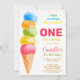 Cette mignonne invitation comporte un cône de crème glacée aquarelle aux couleurs arc-en-ciel.