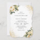Faire-part de mariage fleurie d'ivoire/crème avec confettis d'or, bouquet de roses d'ivoire/crème et verdure. Un design de carte parfait pour inviter vos invités à votre mariage ivoire et or.