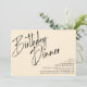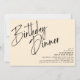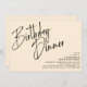 Invitations de dîner d'anniversaire de style minimaliste moderne avec titre "Dîner d'anniversaire" texte dans une police de texte de script de brosse. Conception hors centre avec les détails de votre événement dans le coin inférieur droit. Texte noir sur un arrière - plan couleur crème.