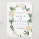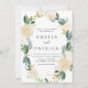 Partagez vos détails mariages avec style grâce à ce faire-part de mariage de code QR qui présente une couronne florale dans des tons doux d'ivoire et de crème, associée à des accents de verdure et de fausse feuille d'or. La couronne encadre votre texte magnifiquement, tandis qu'un code QR scannable permet aux invités d'accéder facilement à votre site Web mariage ou RSVP en ligne. La palette de couleurs douces et l'élégance de la disposition fonctionnent bien pour les thèmes rustiques, de jardin ou de mariages formels. Ajoutez simplement vos informations d'événement et téléchargez votre code QR pour compléter le look. Ce faire-part de mariage floral se marie très bien avec des palettes de couleurs neutres et fonctionne bien pour les mariages en toute saison.