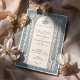 Plongez dans le charme de l'artisanat turc traditionnel avec ce faire-part de mariage islamique, inspiré par la légendaire oeuvre d'Iznik. Une harmonie de bleu saphir et de crème crée une étonnante toile, rappelant les mosquées anciennes et les intérieurs palais. L'invitation est bordée de lattes complexes et remplie d'un éventail de motifs floraux stylisés, rayonnant d'un design de vase central qui symbolise la floraison de la nouvelle vie. Cette oeuvre exquise témoigne de la riche tapisserie culturelle de l'art islamique, offrant une faire-part digne pour votre journée spéciale. Le design reflète un profond respect pour les formes d'art historique, invitant gracieusement les invités à une fête où deux coeurs et deux héritages se rejoignent.