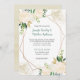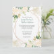 Des invitations modernes à des mariages aquarelles avec des roses crème et blanches, de la parties scintillant dorée, des feuilles dorés et verts et d'autres verdure avec une superposition géométrique. Le arrière - plan est un lave-linge doux en or. Le modèle est facile à personnaliser - votre nom est un élégant script de calligraphie manuscrit et le corps est une police moderne. Le dos de la carte est un lavage à l'aquarelle en or.