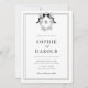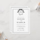 Ce Crest Coquette Bow Monogram All in One Faire-part de mariage exhale l'élégance avec son crête victorienne et son chic monogramme noir vintage coquette, encadré par une double bordure élégante. Idéal pour une célébration formelle, il comprend un hébergement personnalisé et des informations de réception, ainsi qu'un code QR pratique au dos pour RSVP en ligne. Un parfait mélange de tradition et de modernité !