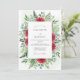 This design features a lush arrangement of deep red dahlias and vibrant forest greenery. Delicate ferns and silver dollar eucalyptus leaves cluster together against a crisp white backdrop. The rich color palette of crimson and emerald green evokes a natural, woodsy atmosphere. This artwork is ideal for those seeking a botanical aesthetic with a touch of elegance.