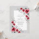This design features a striking contrast between vibrant crimson anemones and soft gray foliage. The floral arrangements cascade across the composition, creating a modern and sophisticated aesthetic. A palette of deep red and silver-toned leaves evokes a sense of elegance perfect for a winter or holiday event. Watercolor textures bring an artistic, handcrafted feel to the overall botanical display.
