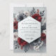 Embrace a darkly romantic aesthetic with this dramatic floral design. A stunning arrangement features lush crimson peonies and charcoal anemones, contrasted beautifully with delicate ivory roses. Set against a soft, misty background, the composition is accented with silvery-grey foliage, creating a moody and sophisticated atmosphere.
