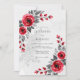 This design features deep crimson roses paired with charcoal grey foliage for a striking contrast. The romantic floral arrangement creates an elegant atmosphere suitable for a formal winter theme. Subtle grey floral shadows in the background add depth and a touch of sophistication to the overall aesthetic.