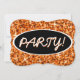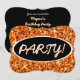 Invitation avec un design imprimé moderne avec des étoiles éparpillées sur un arrière - plan motif stylisé "à paillettes" dans les tons orange et texte en blanc sur un arrière - plan ovale noir. Un design personnalisable pour personnaliser avec votre propre texte, images et idées. Veuillez noter qu'il s'agit d'une image art numérique imprimée. Le produit ne brille pas ou ne contient pas de parties scintillant ou de paillettes réelles.